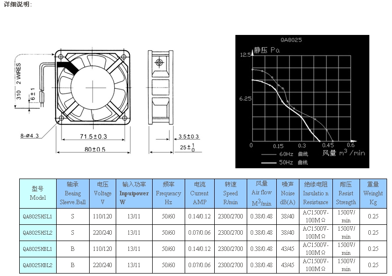 QA8025HSL1,QA8025HSL2,QA8025HBL1,QA8025HBL2,交流風(fēng)機(jī)