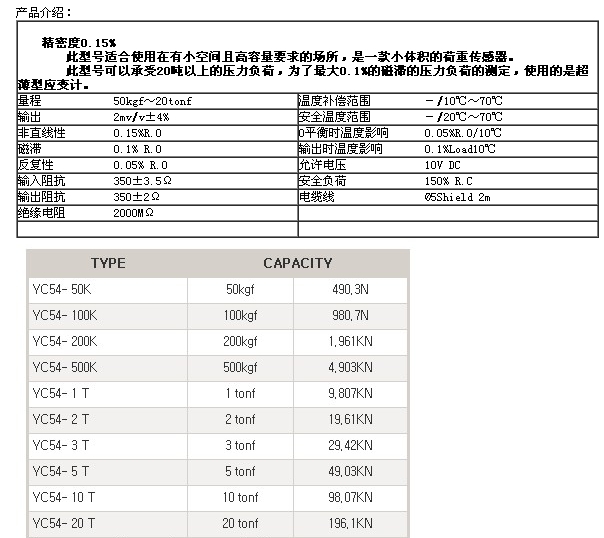 YC54-50K,YC54-100K,YC54-20K,YC54-1T,YC54-2T,YC54-3T,setech稱重傳感器