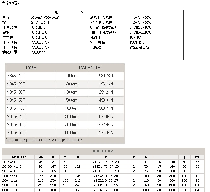 YB45-10T,YB45-20T,YB45-30T,YB45-50T,YB45-100T,YB45-200T,setech稱重傳感器
