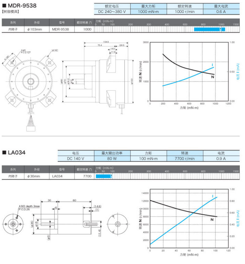 MDR-9538,LA034,LA052-040E,LA052-080E,LA052-110E,內(nèi)轉(zhuǎn)子直流無刷馬達