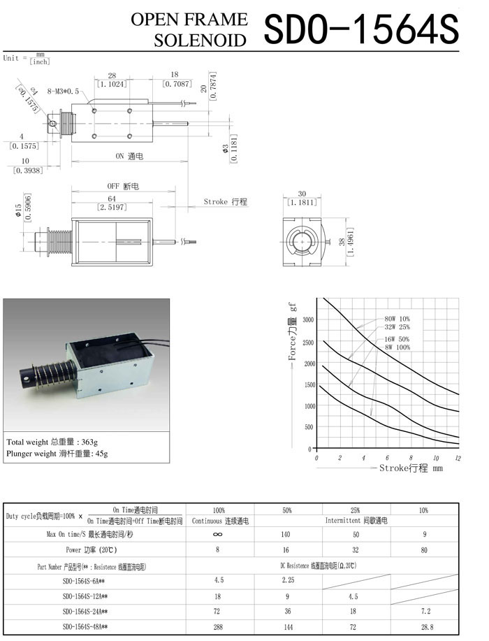 SDO-1564S-6A,SDO-1564S-12A,SDO-1564S-24A,SDO-1564S-48A,直動(dòng)電磁鐵