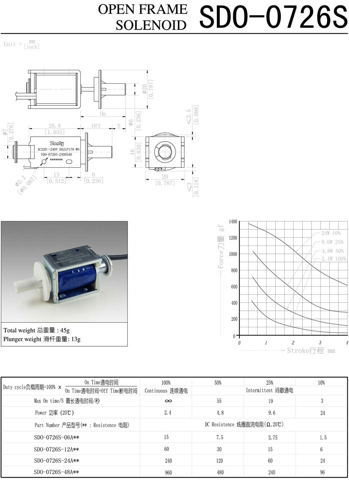 SDO-0726S-06A,SDO-0726S-12A,SDO-0726S-24A,SDO-0726S-48A,直動電磁鐵 |