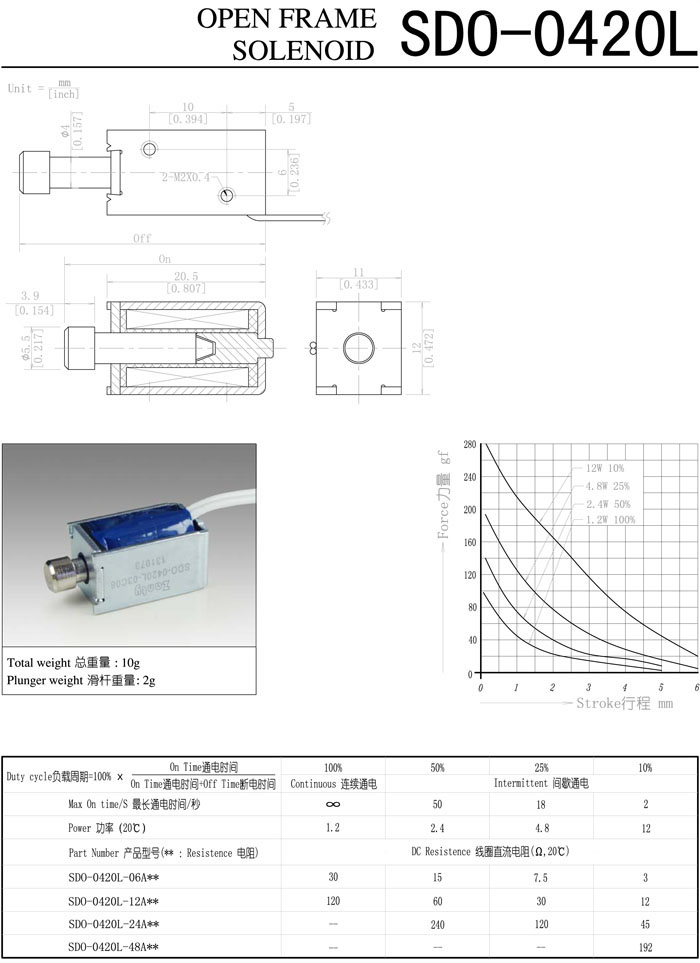 SDO-0420L-06A,SDO-0420L-12A,SDO-0420L-24A,SDO-0420L-48A,直動電磁鐵 |