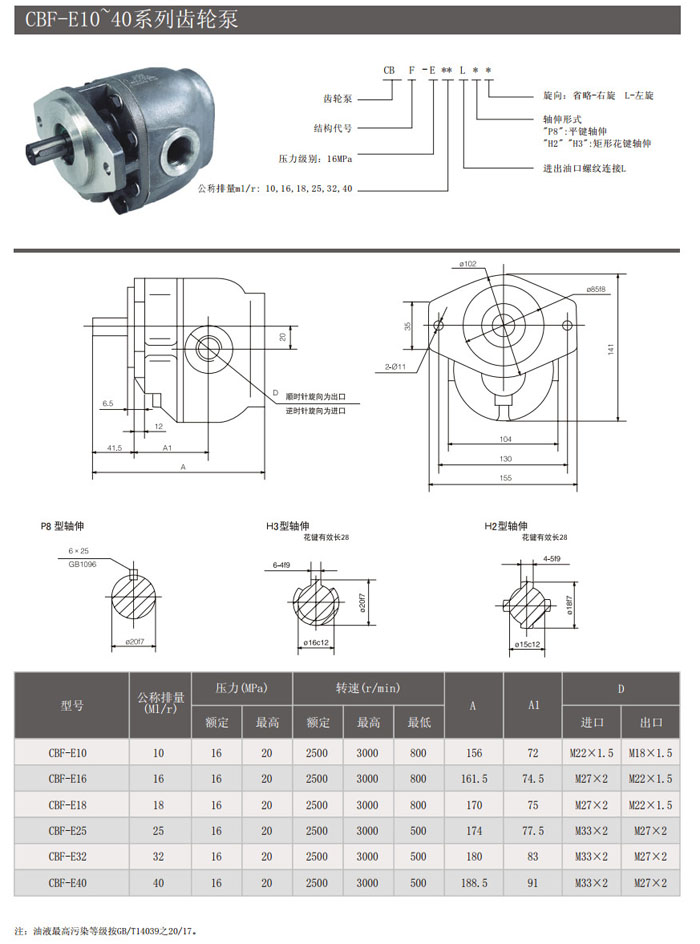 CBF-E10,CBF-E16,CBF-E18,CBF-E25,CBF-E32,CBF-E40,CBF-E10LP8,CBF-E10LP8L,齒輪泵 |