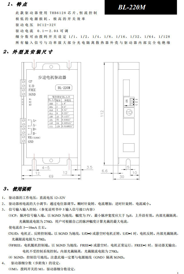 BL-220M,步進(jìn)電機(jī)驅(qū)動(dòng)器