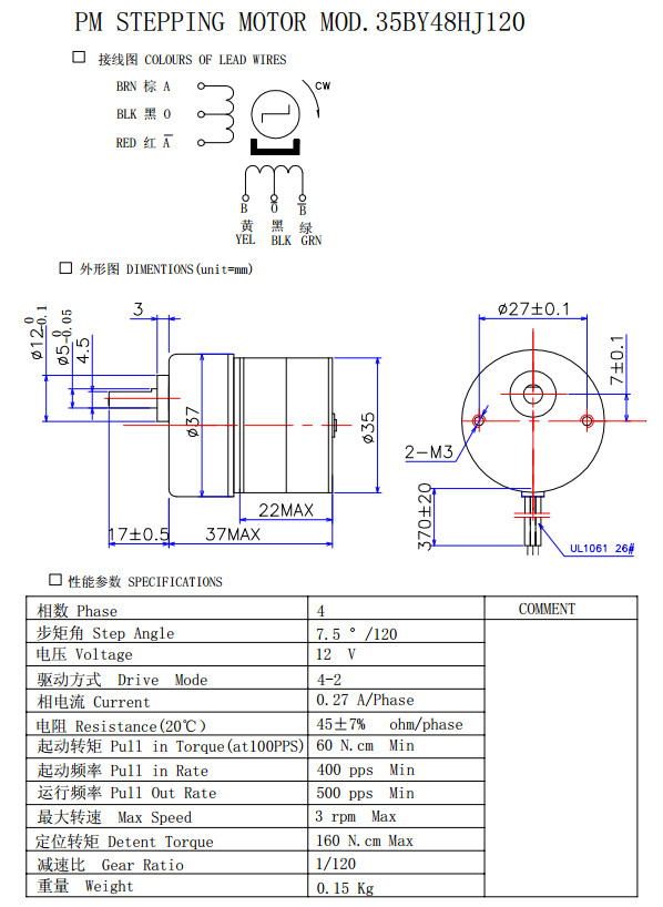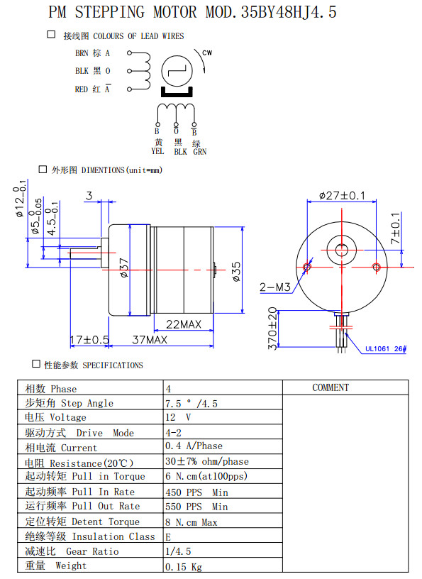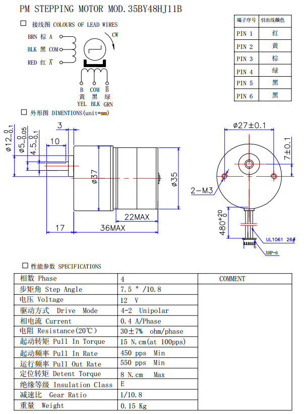 35BY48HJ4.5,35BY48HJ6.3,35BY48HJ11B,35BY48HJ17.5,精密減速步進電機