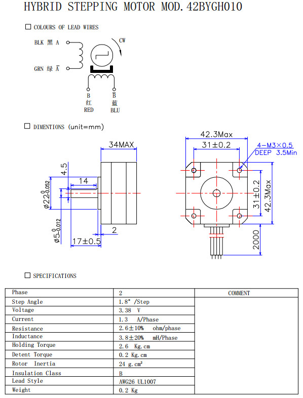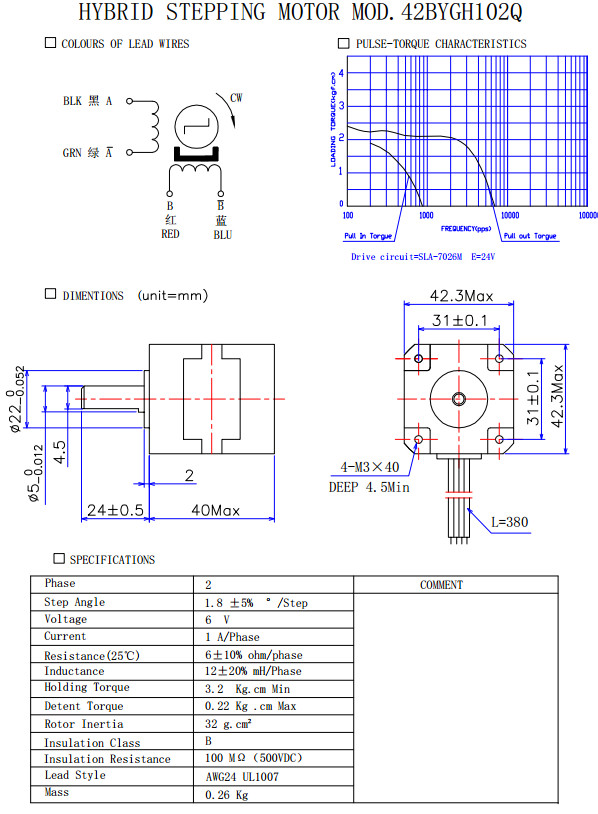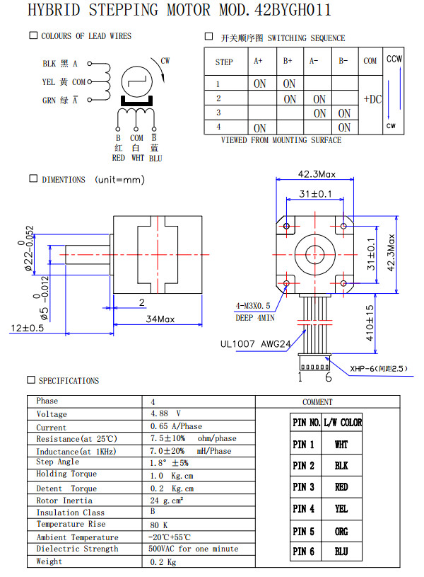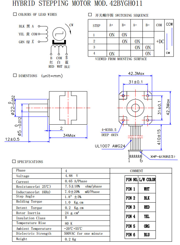 42BYGH010,42BYGH011,42BYGH023,42BYGH102Q,42BYGM402,混合式步進電機