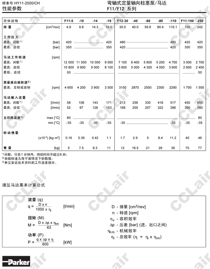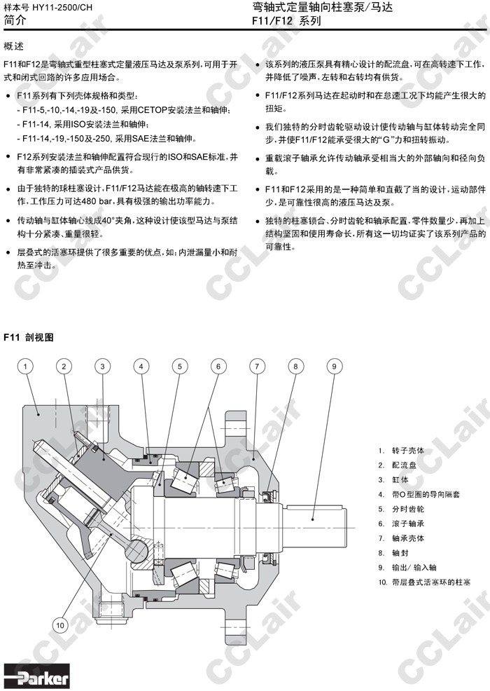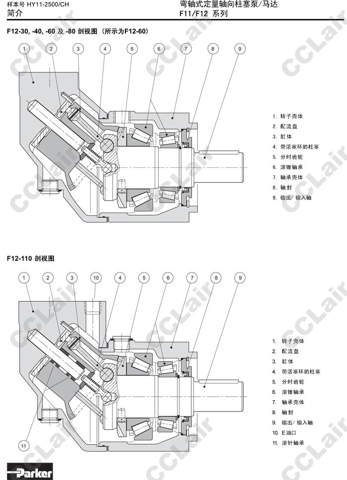 F11-005-L,F11-010-L,F11-014-L,F11-019-L,F11-150-L,F11-005-LB-CN-K,Parker彎軸式定量軸向柱塞馬達(dá)