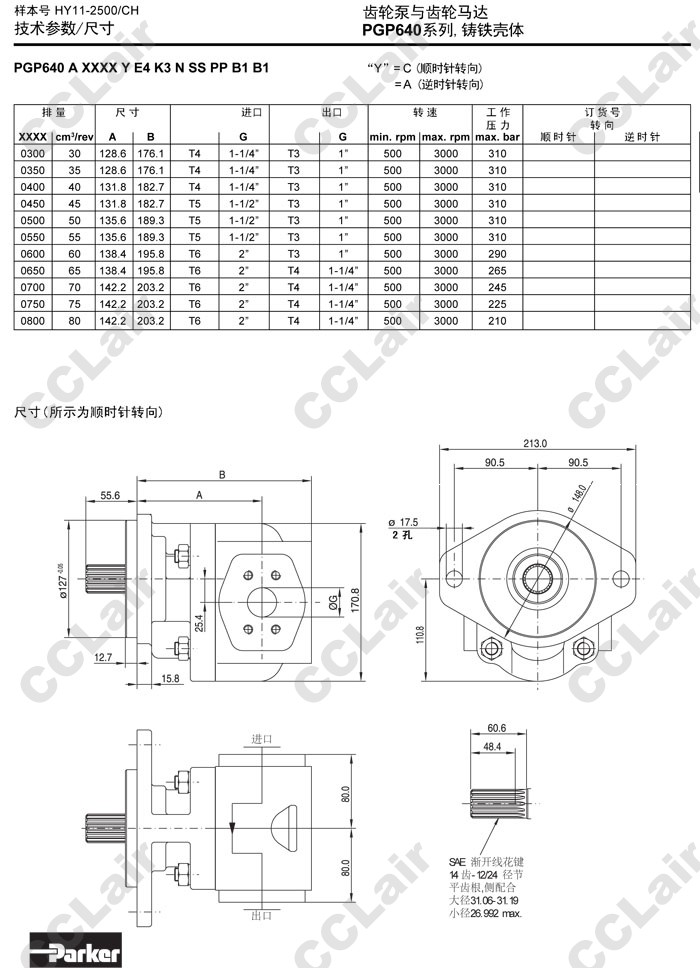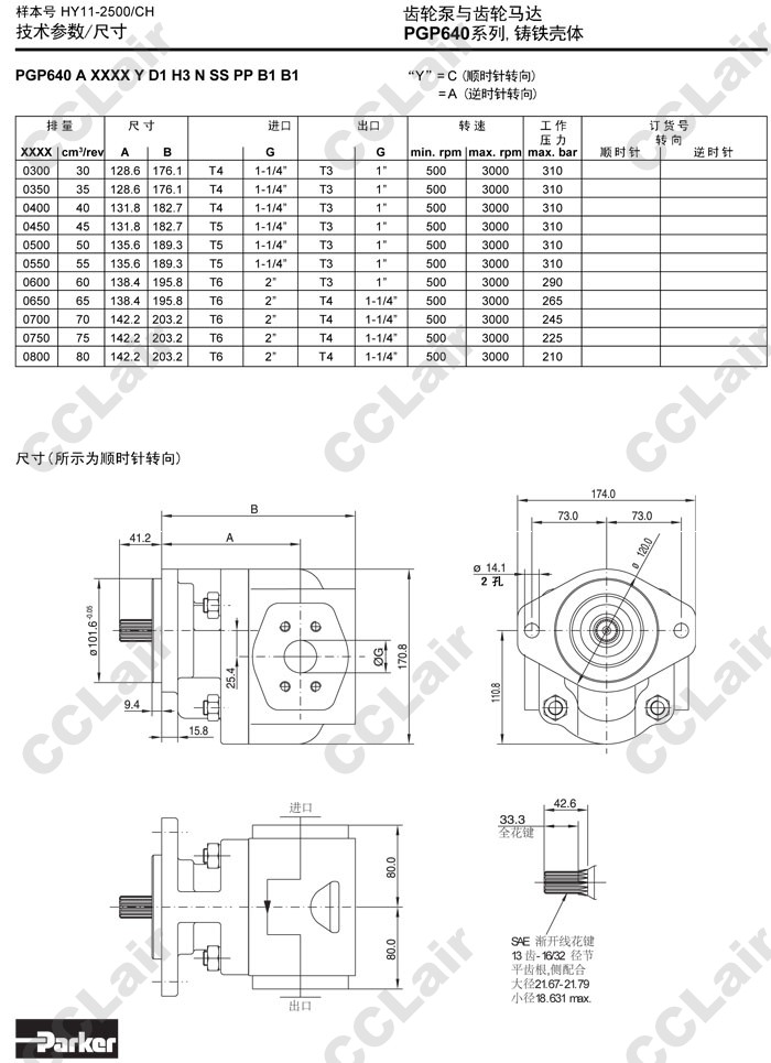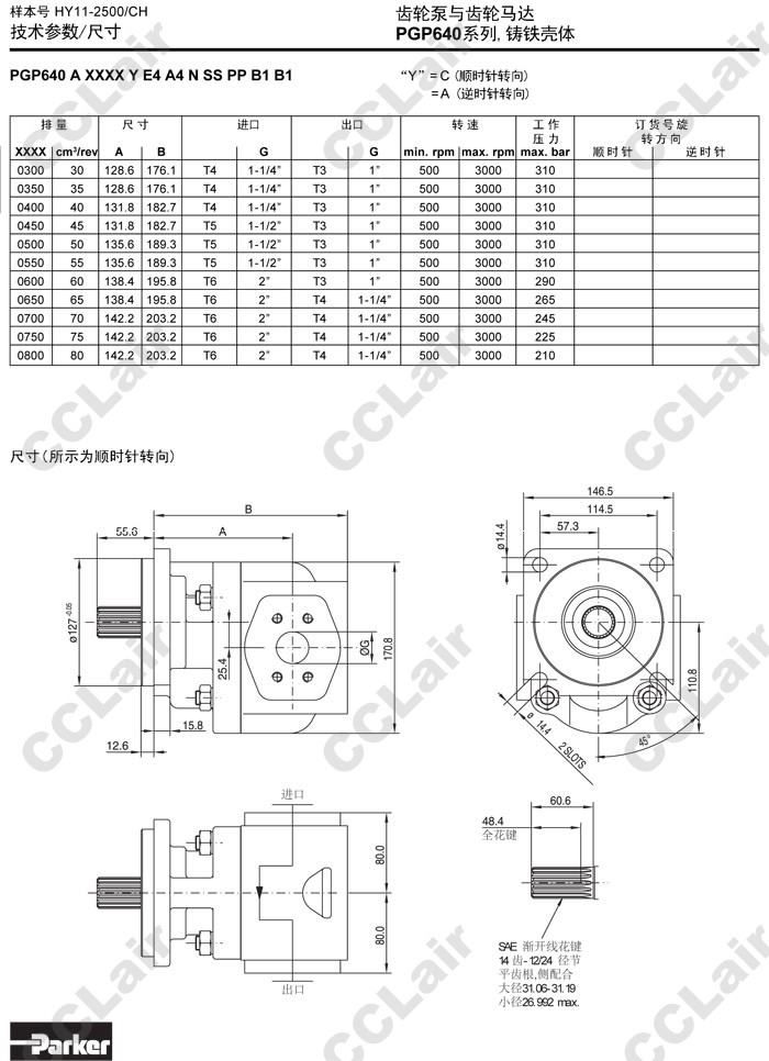 PGP640A,PGP640B,PGP640A0300CD1A3,PGP640B0300CD1A3,PGP640A0350AD1A3,Parker齒輪泵