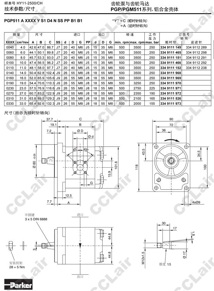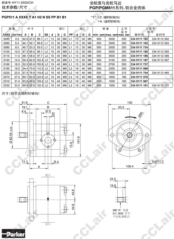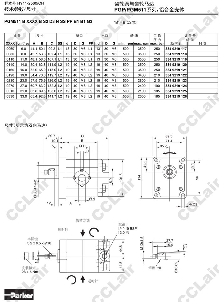 PGP511A,PGP511B,PGP511M,PGP511A0040CA1H1,PGP511M0040CA1H1,PGP511B0040CA1H1,Parker齒輪泵 |