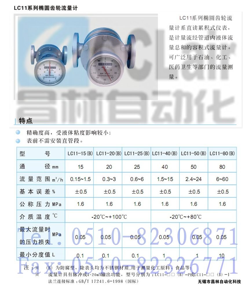 LC11-15(B),LC11-20(B),LC11-25(B),橢圓齒輪流量計