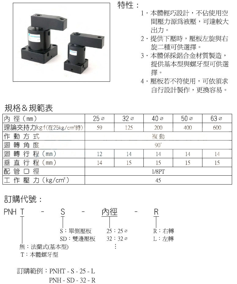 PNH-S-25,PNH-S-32,PNHT-S-25,PNHT-SD-32,PNH-SD-25,panix油壓回轉(zhuǎn)夾具缸
