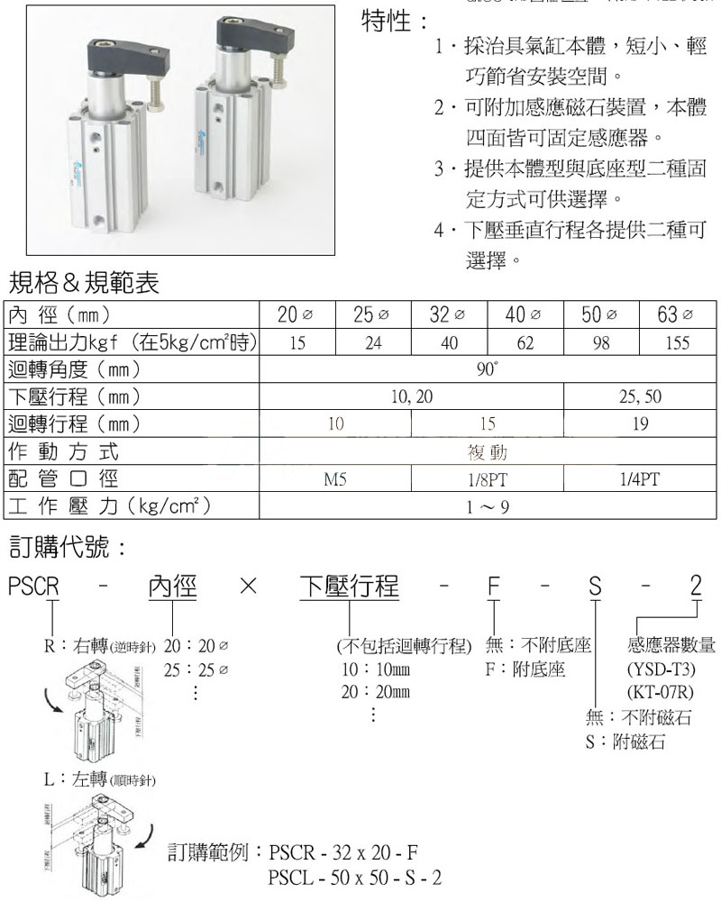 PSCR-20,PSCR-32,PSCR-40,PSCL-20,PSCL-32,PSCL-40,panix夾具治具氣缸 |
