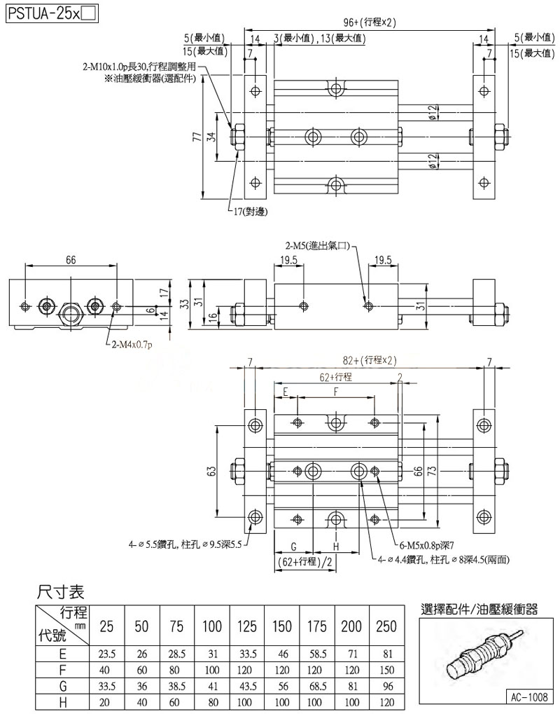 PSTUA-16,PSTUA-25,PSTUA-32,PSTMA-16,PSTMA-20,PSTMA-32,panix滑臺氣缸