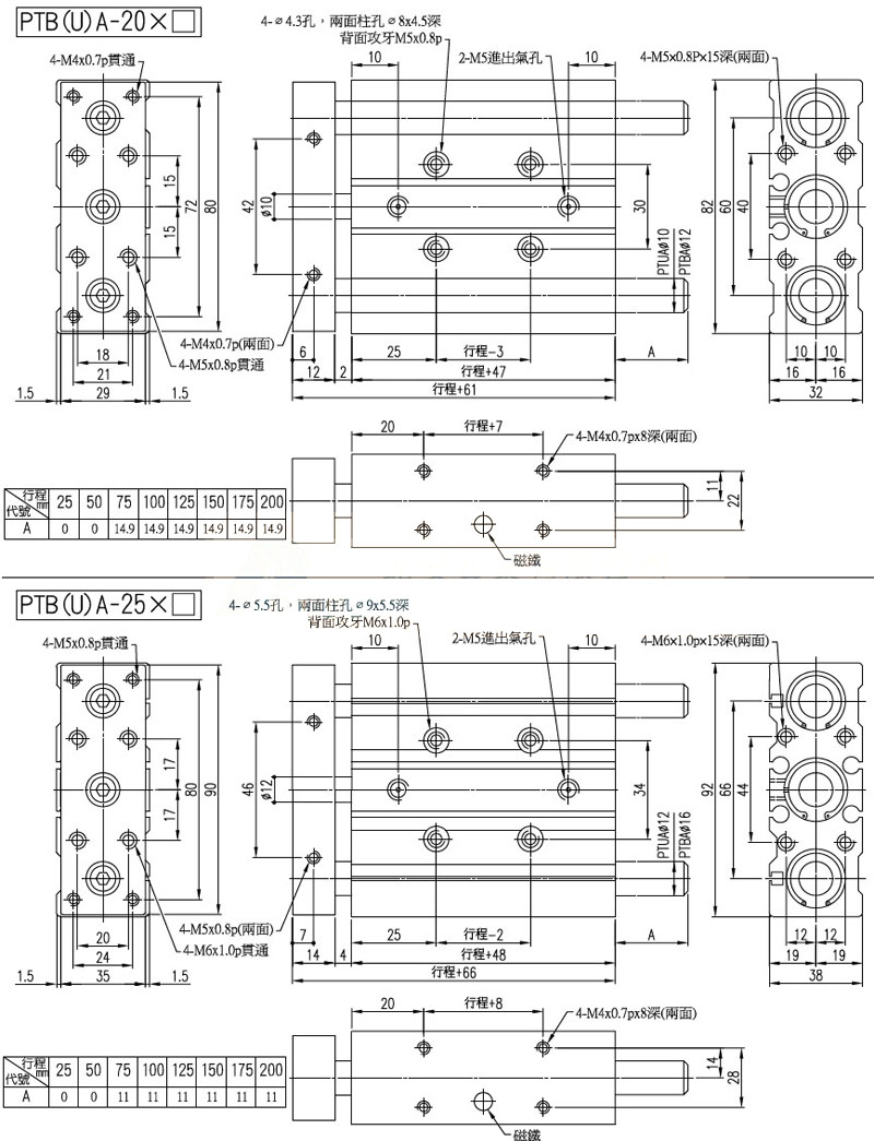 PTBA-10,PTBA-20,PTBA-32,PTBA-40,PTUA-10,PTUA-20,PTUA-32,panix導桿薄型氣缸