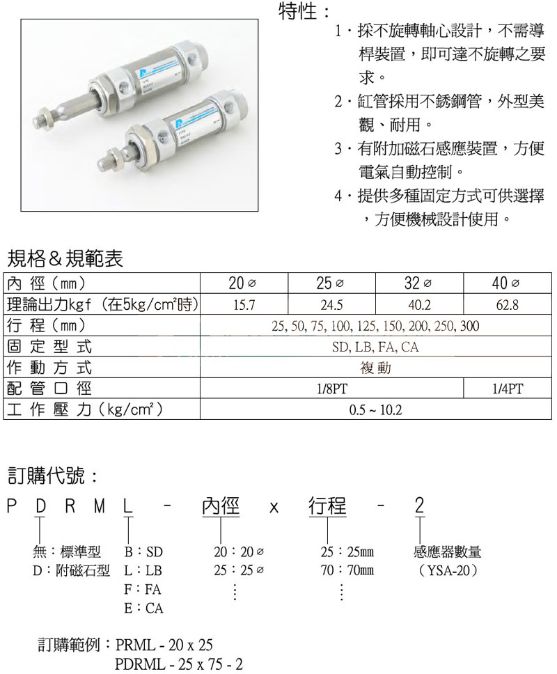 PDRMB-20,PRMB-25,PDRML-32,PDRMF-40,PDRME-20,PRML-25,不旋轉迷你氣缸