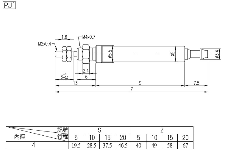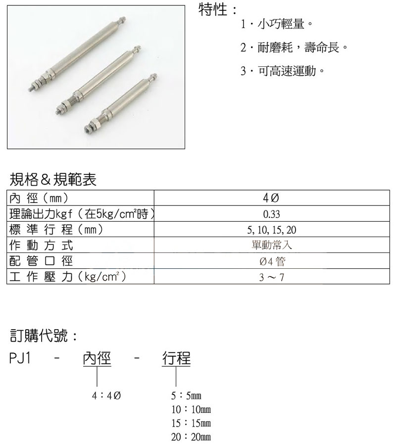 PJ1-4*5,PJ1-4*10,PJ1-4*15,PJ1-4*20,panix筆型氣缸