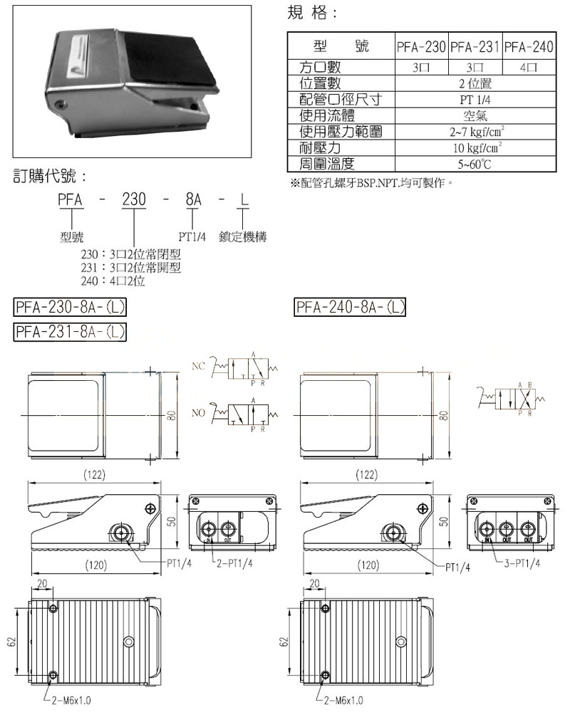 PFA-230-8A-L,PFA-231-8A-L,PFA-240-8A-L,panix腳踏閥