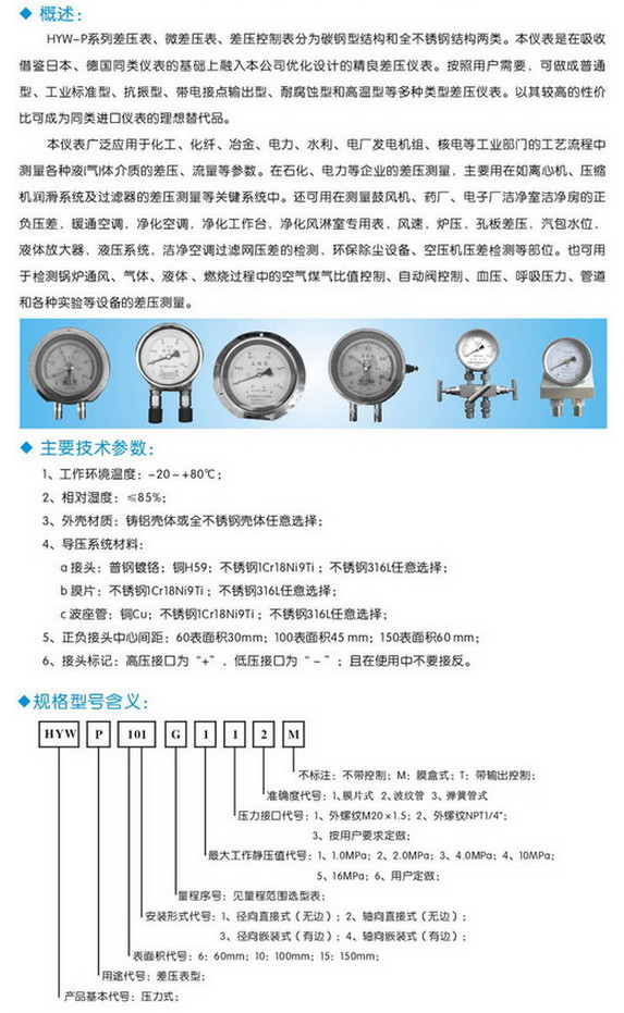 HYW-P101G112M,HYW-P63G212M,HYW-P151G412M,HYW-P102G322M,差壓表