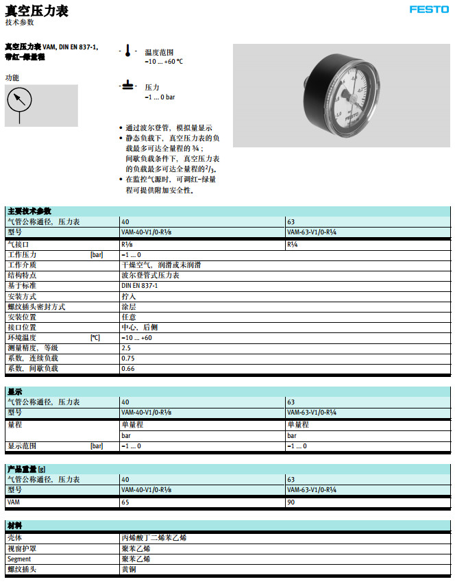 VAM-40-V1/0-R1/8-E-RG,VAM-63-V1/0-R1/4-E-RG,festo真空壓力表