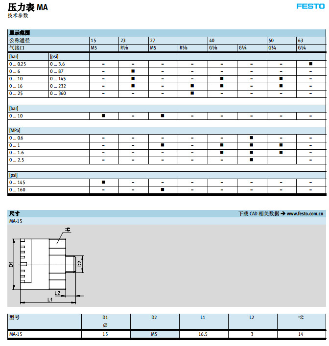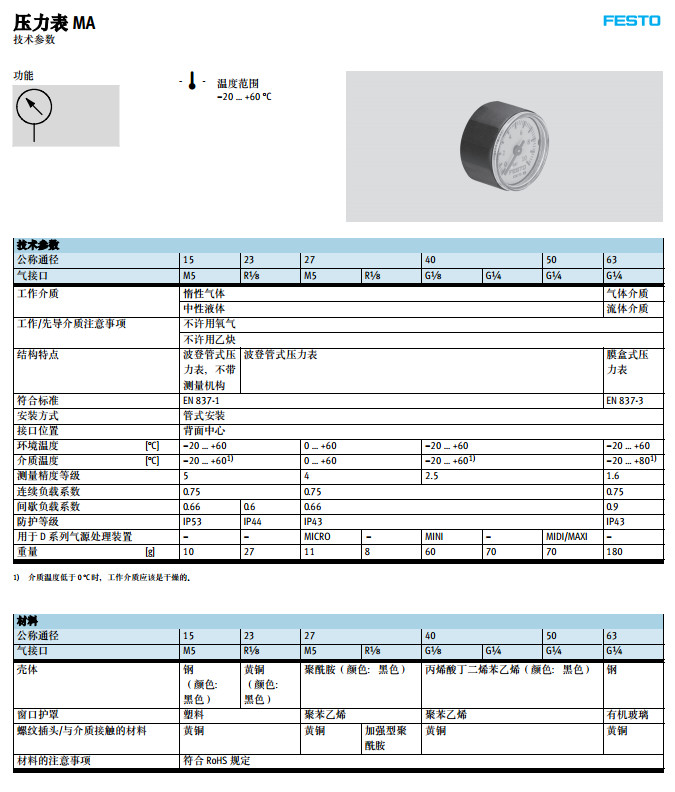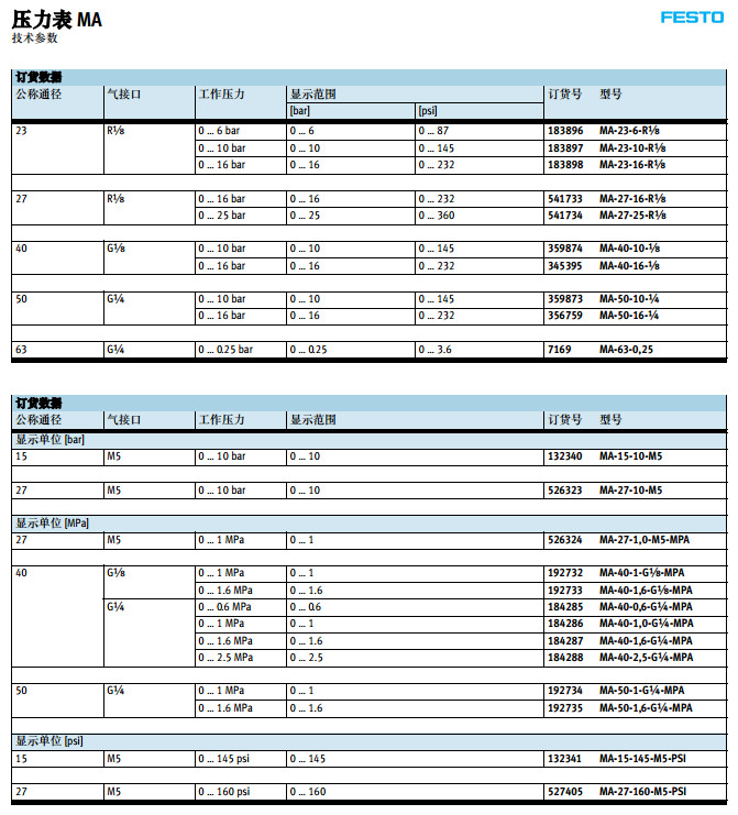 MA-23-6-R1/8,MA-27,MA-40,MA-50,MA-15-10-1/4,festo壓力表