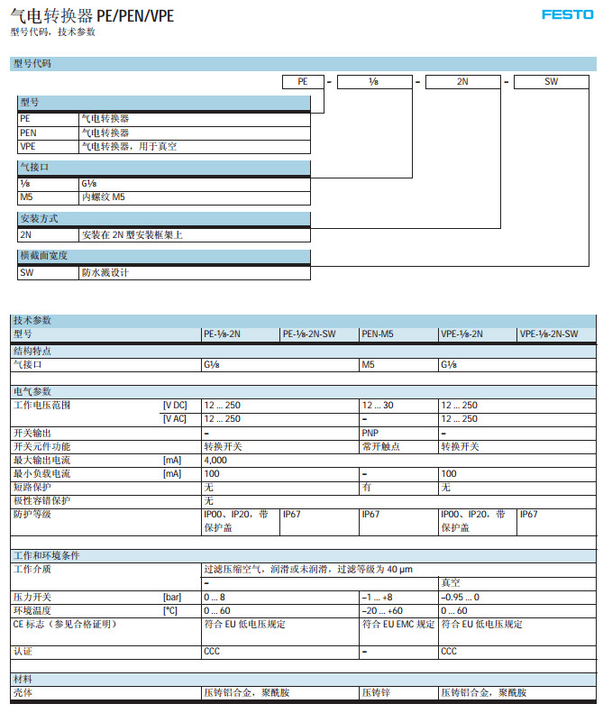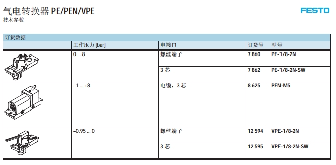 PE-1/8-2N-SW,PEN-1/8-2N-SW,PE-M5-2N-SW,PEN-M5-2N-SW,festo氣電轉(zhuǎn)換器 |