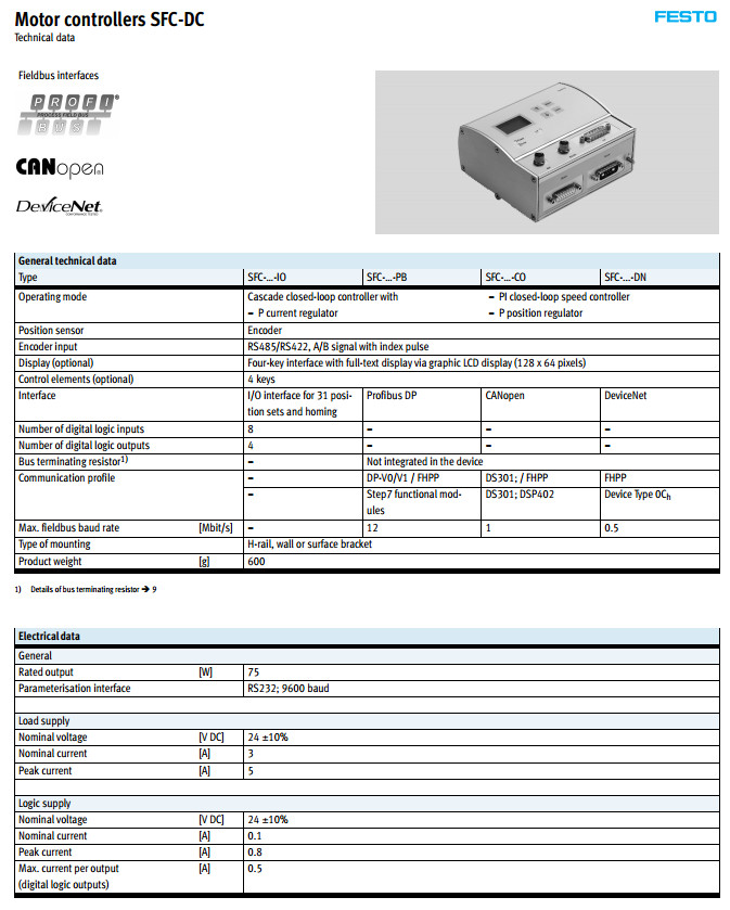 SFC-DC-VC-3-E-H0-IO,SFC-DC-VC-3-E-H2-PB,festo馬達控制器