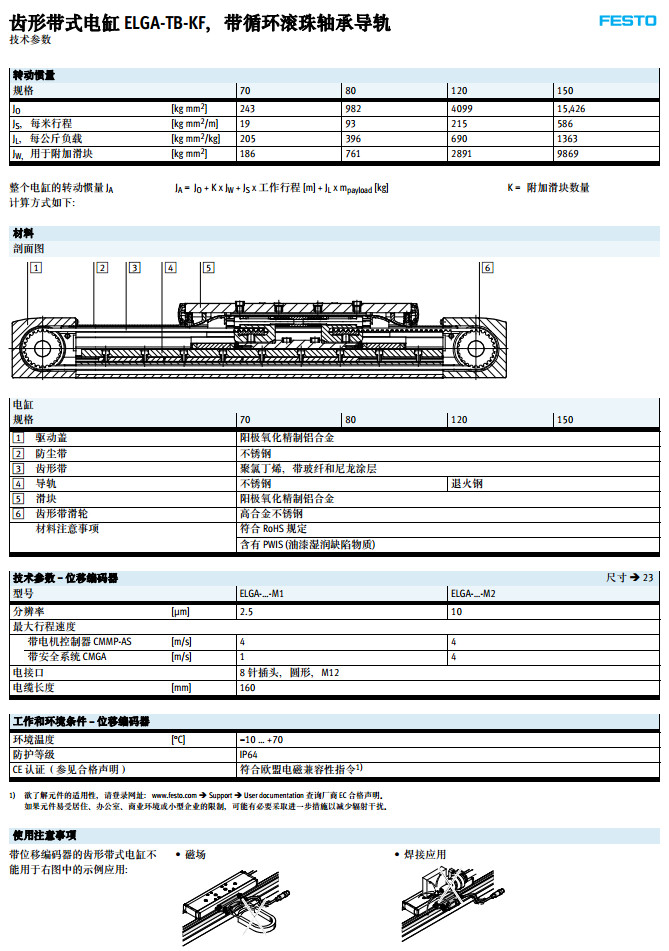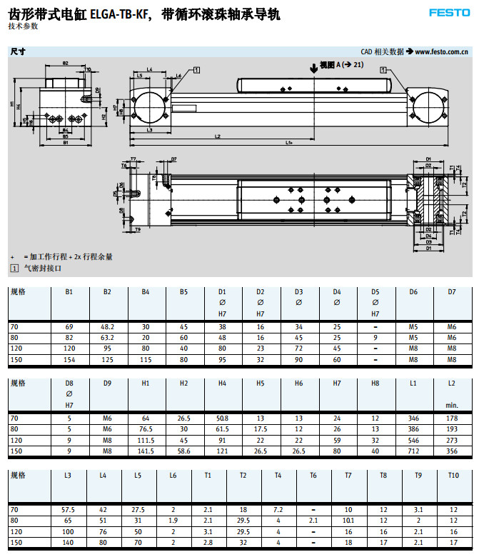 ELGA-TB-KF-70,ELGA-TB-KF-80,ELGA-TB-KF-120,ELGA-TB-KF-150,festo齒形帶式電缸