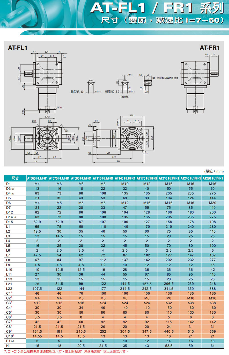 AT065-FL1,AT075-FL1,AT090-FL1,AT210-FR1,AT240-FR1,AT280-FR1,伺服專用減速機