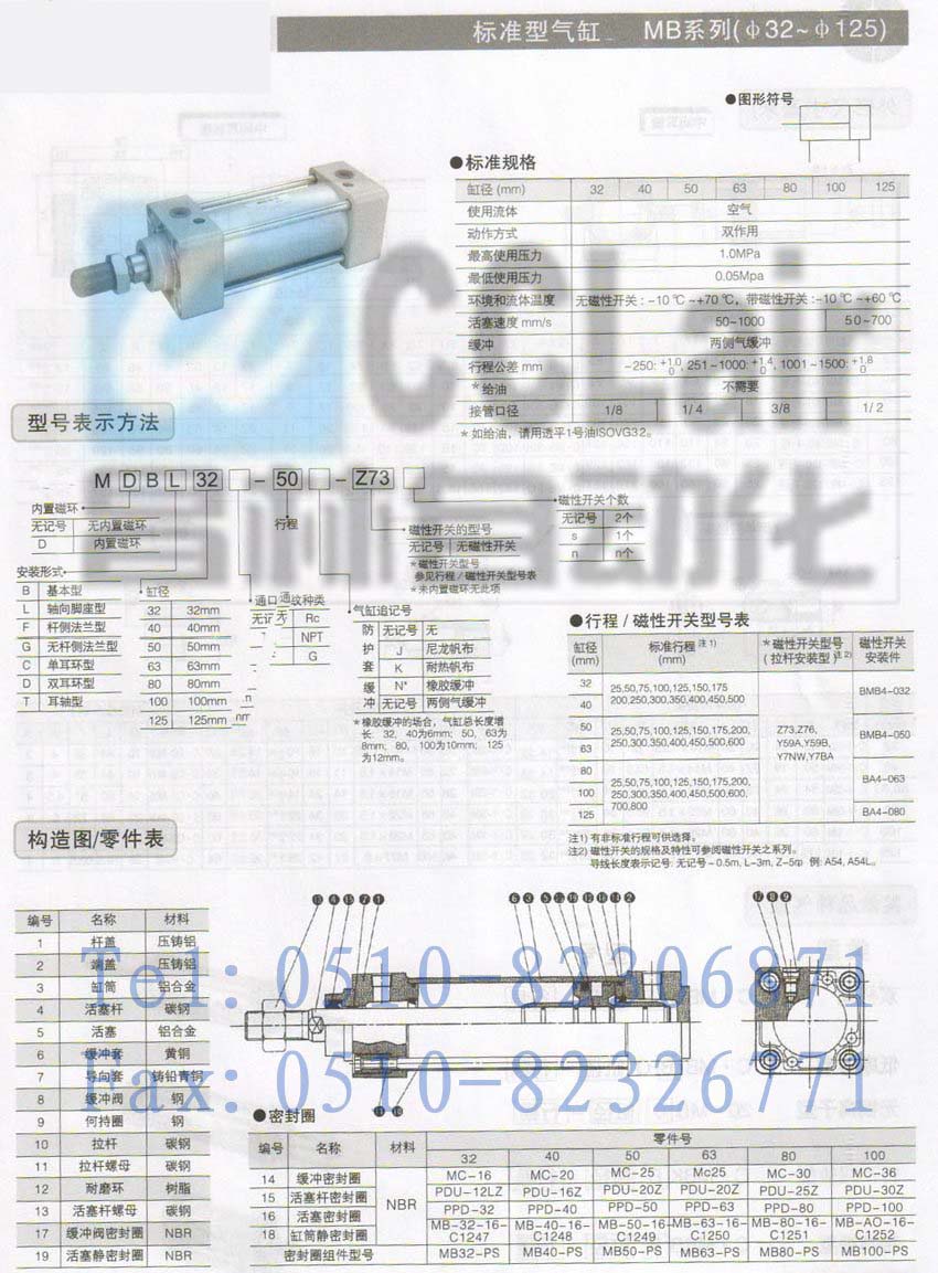 MBB32-500J,MBB40-25,MBB40-50,MBB40-75,MBB40-100,標(biāo)準(zhǔn)型氣缸