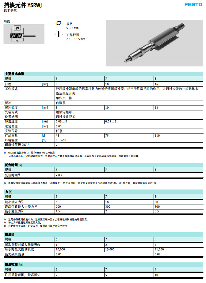 YSRWJ-5-8-F,YSRWJ-7-10-F,YSRWJ-8-14-F,festo液壓緩沖器