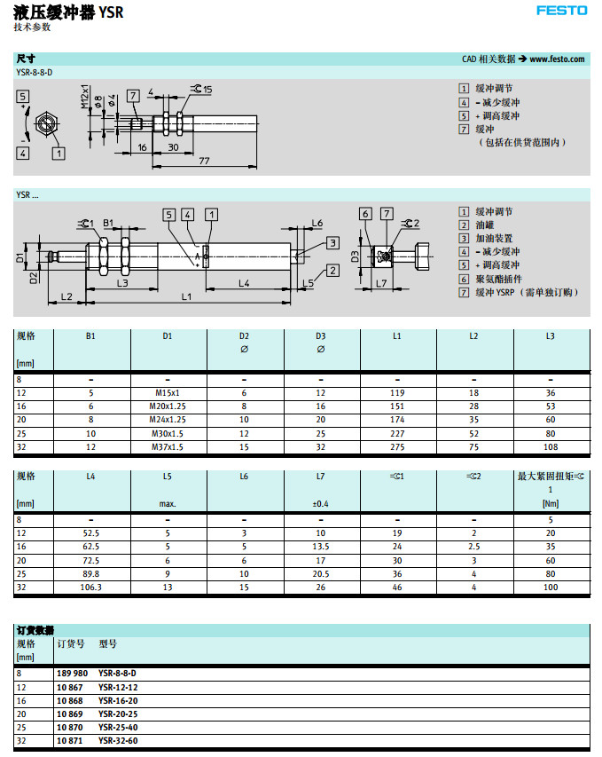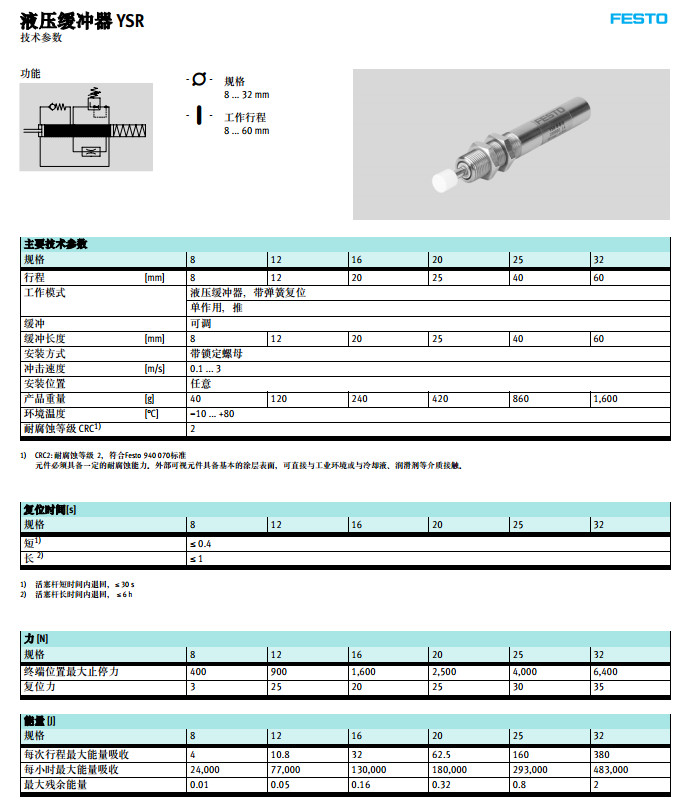 YSR-8,YSR-12,YSR-16,YSR-20,YSR-25,YSR-32,festo液壓緩沖器