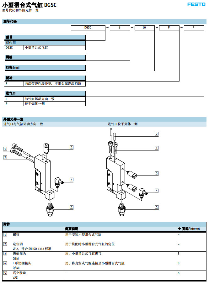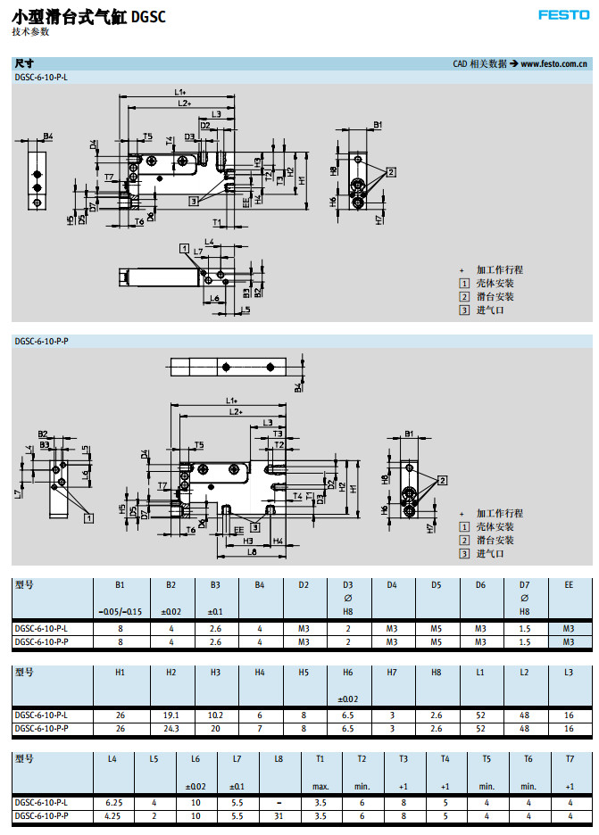 DGSC-6-10-P-L,DGSC-6-10-P-P,festo小型滑臺(tái)式氣缸