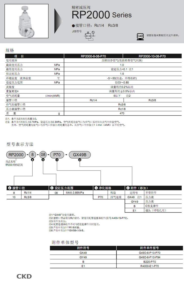 RP2000-8-08-P70,RP2000-10-08-P70,CKD精密減壓閥