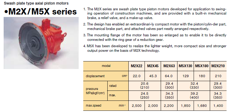 M2X22,M2X45,M2X63,M5X130,M5X180,M2X210,Kawasaki斜盤式軸向柱塞馬達