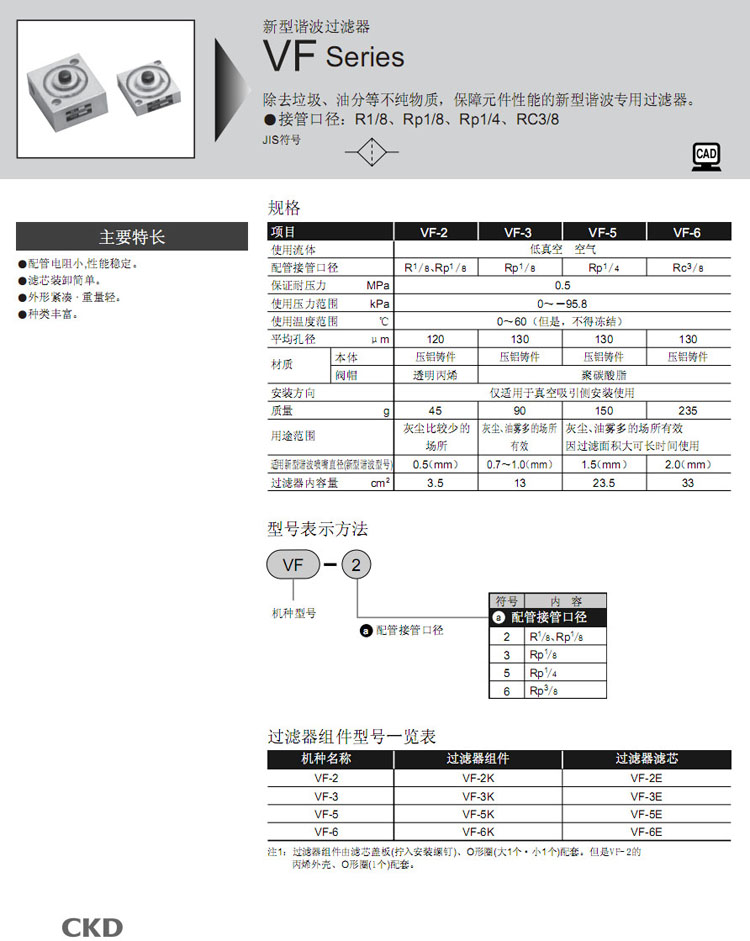 VF-2,VF-3,VF-5,VF-6,CKD過濾器