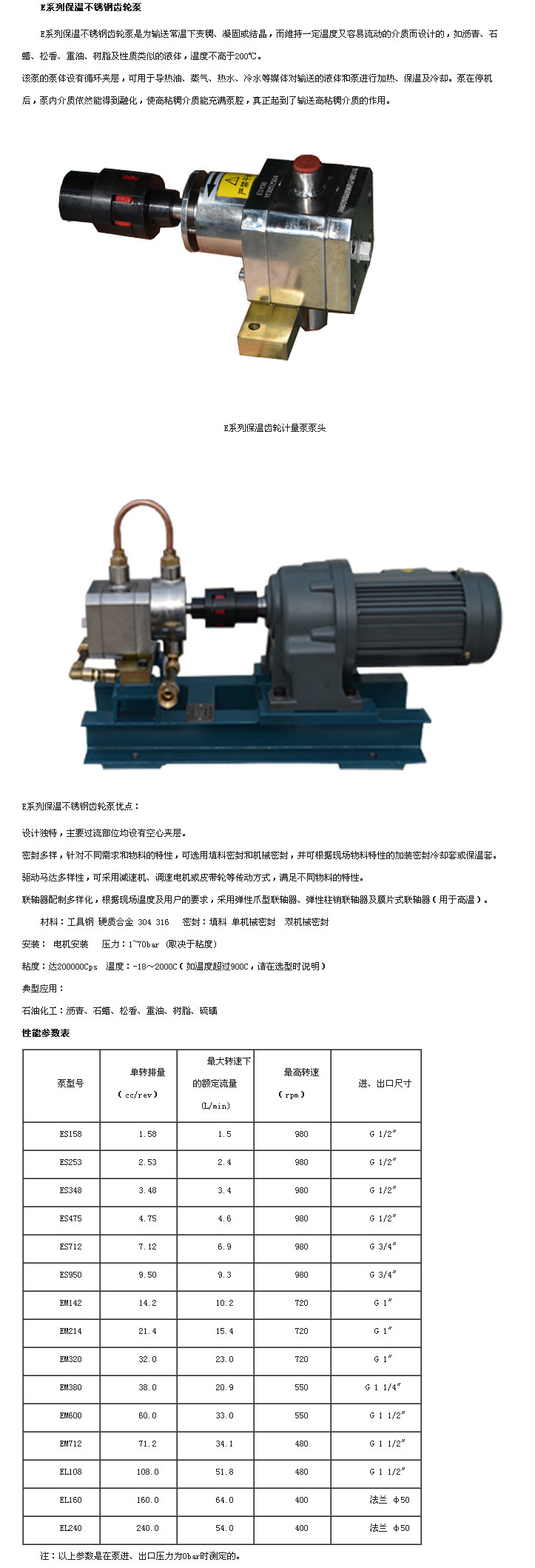 ES158,ES253,ES348,ES475,ES712,ES950,EM142,EM214,EM320,EM380,EM600,EM712,EL108,EL160,EL240,保溫齒輪計(jì)量泵