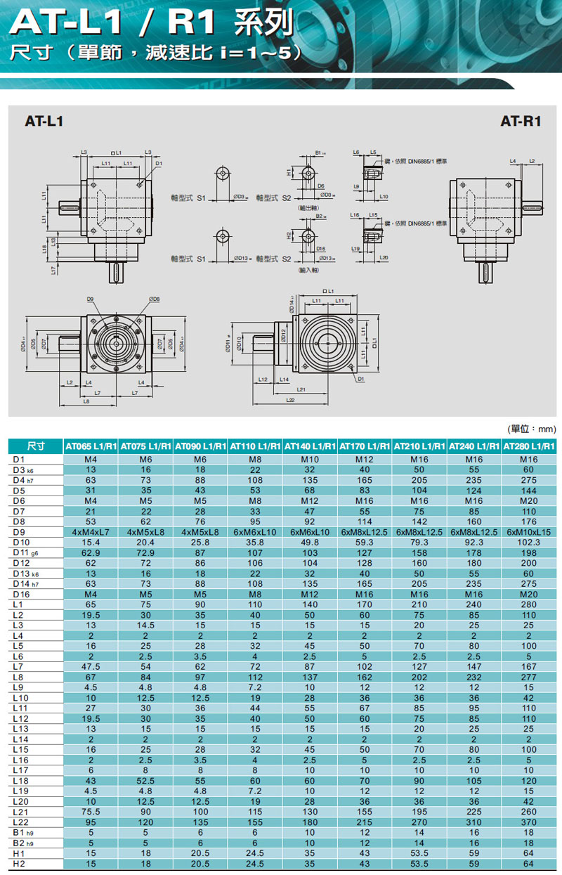 AT065-L1,AT075-L1,AT090-L1,AT110-L1,AT170-R1,AT210-R1,伺服專用減速機