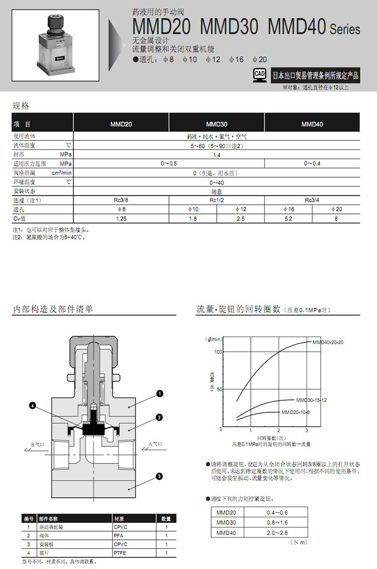 MMD20-10-8,MMD30-15-12,MMD40-20-20,MMD20-10US-8,MMD30-12US-10,MMD40-20BUS-16,CKD藥液用手動(dòng)閥