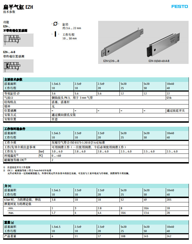 EZH-1.5*6.5-10,EZH-2.5*9-10,EZH-5*20-25,EZH-10*40-40,festo扁平氣缸