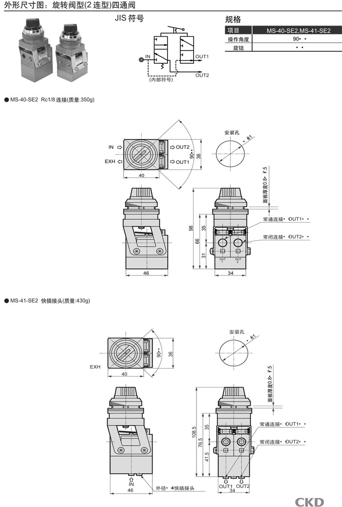 MS-00,MS-01,MS-10,MS-11,MS-40,MS-41,MS-00-PP,MS-01-PP,MS-10-PP,MS-40-SE2,CKD機(jī)械閥
