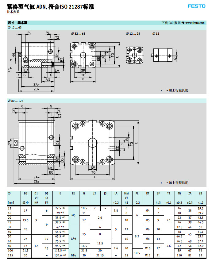 ADN-12,ADN-16,ADN-20,ADN-25,ADN-32,ADN-40,ADN-50,festo緊湊型氣缸