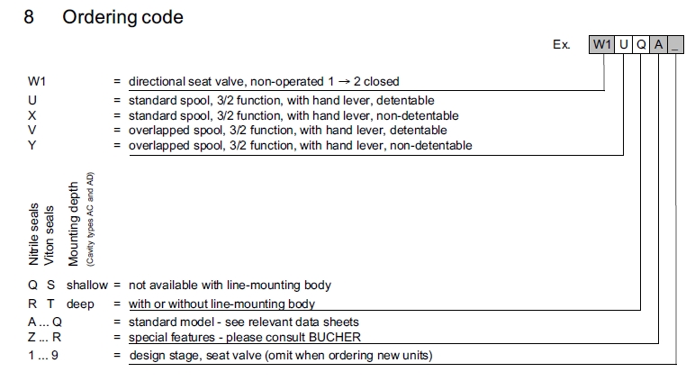 W1UQA1,W1XQA1,W1VQA1,W1YQA1,W1URA1,W1XRA1,W1VRA1,W1YRA1,Bucher方向閥