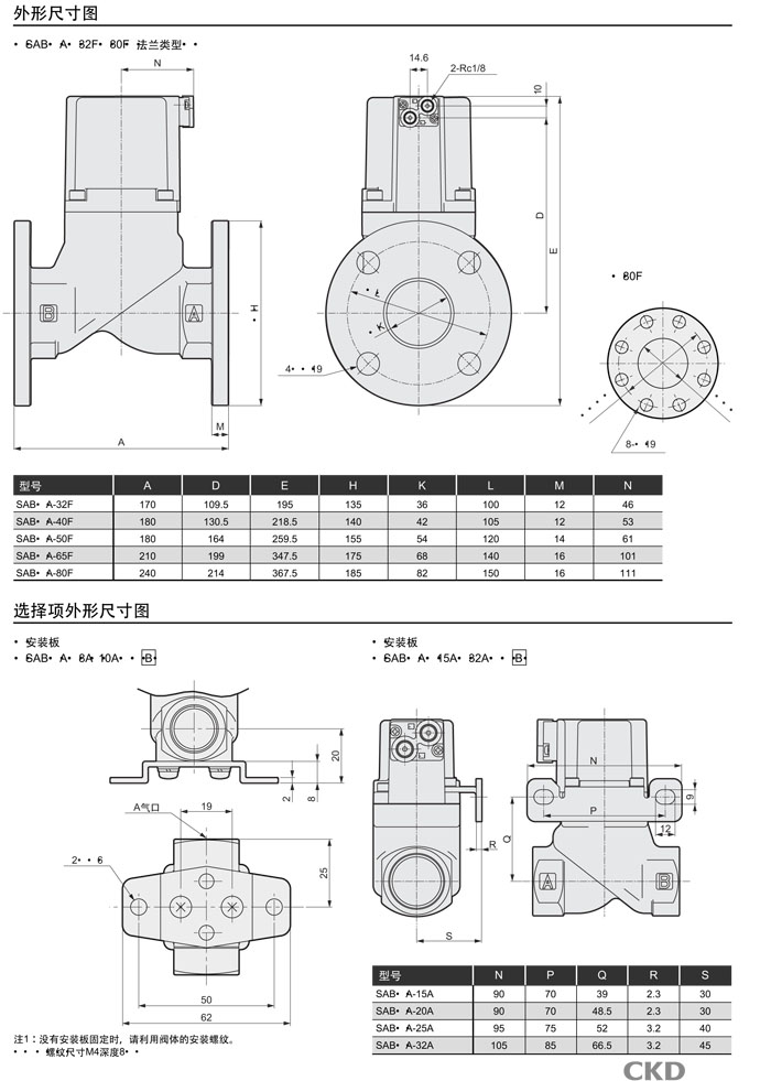 SAB1A-40F,SAB1A-50A,SAB1A-50F,SAB2A-8A,SAB2A-10A,SAB2A-15A,SAB2A-20A,SAB2A-25A,CKD氣控式2通閥