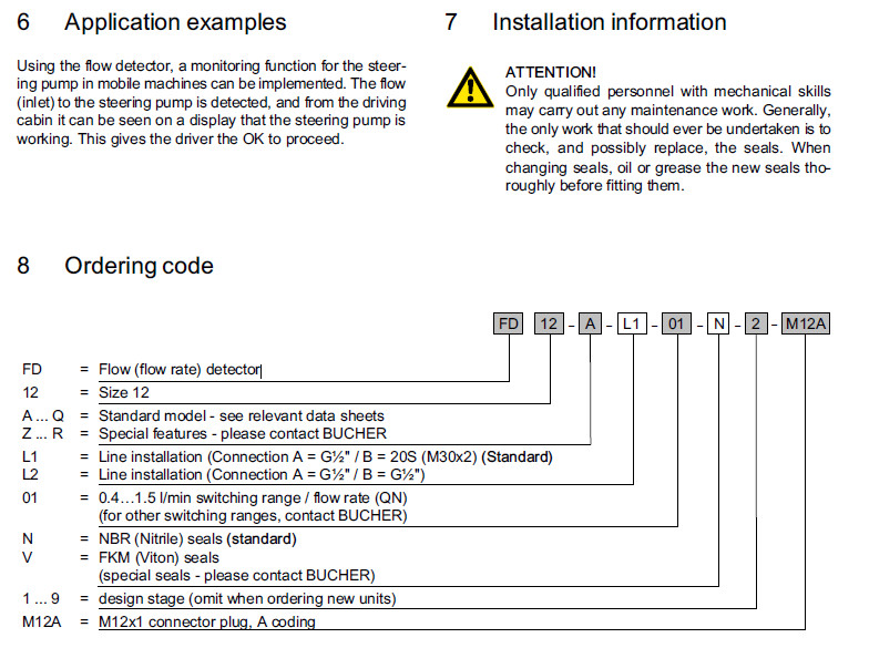 FD12-A-L1-01-N-2-M12A,FD12-A-L2-01-N-2-M12A,FD12-A-L1-01-V-2-M12A,Bucher流量檢測器 |