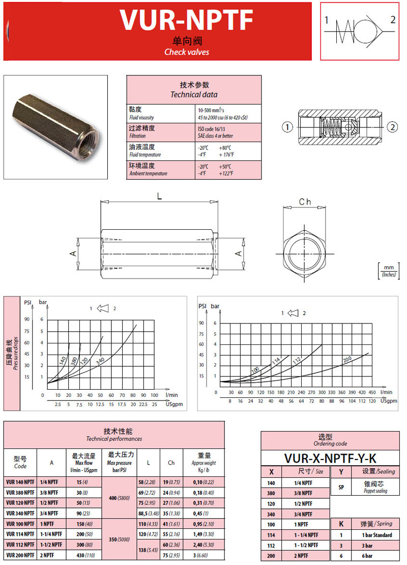 VUR140NPTF,VUR380NPTF,VUR120NPTF,VUR340NPTF,VUR100NPTF,單向閥