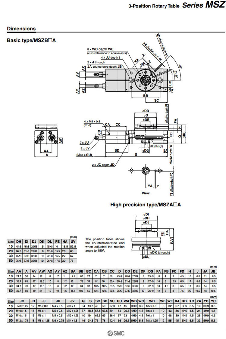 MSZA10A,MSZA20A,MSZA30A,MSZA50A,MSZB10A,MSZB20A,MSZB30A,MSZB50A,SMC3位擺臺氣缸
