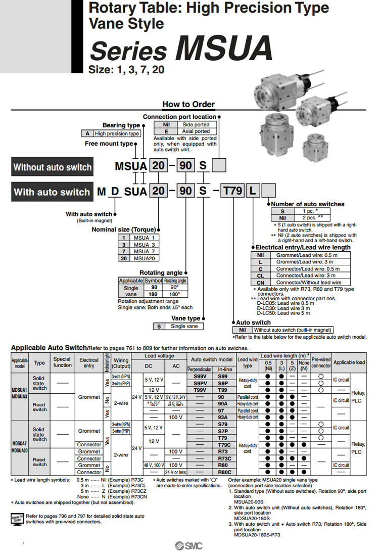 MDSUA1-90,MDSUA1-180,MDSUA3-90,MDSUA3-180,MDSUA7-90,MDSUA7-180,MDSUA20-90,MDSUA20-180,SMC擺臺氣缸