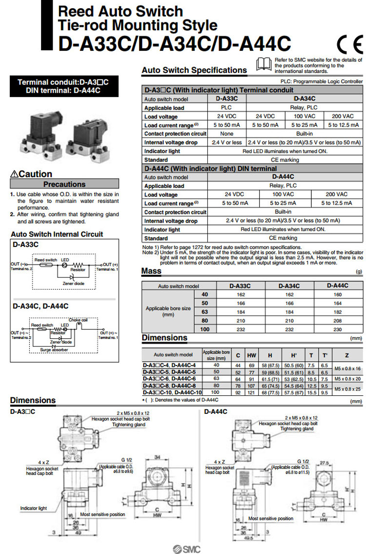 D-A33C,D-A34C,SMC自動(dòng)開(kāi)關(guān)
