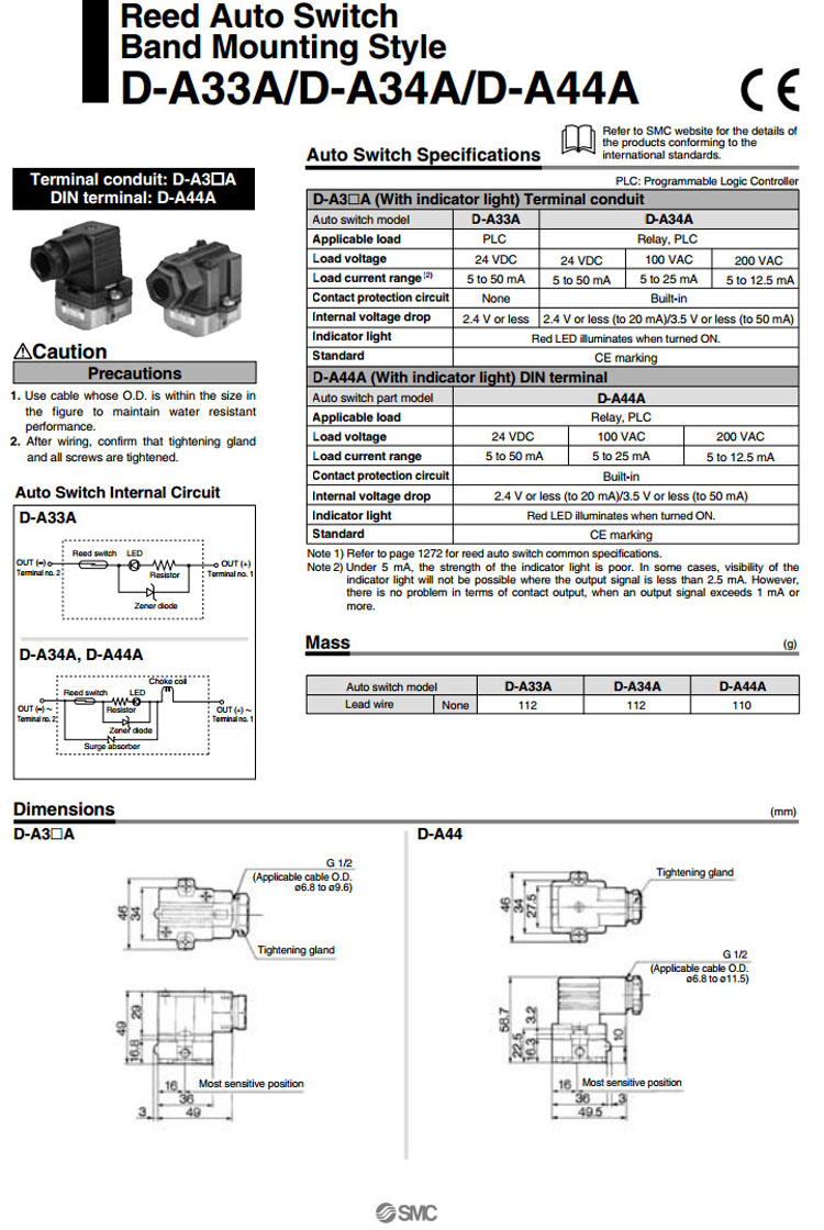 D-A33A,D-A34A,D-A44A,SMC自動開關